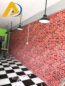 Giấy dán tường 3d giả gạch đỏ quán ăn