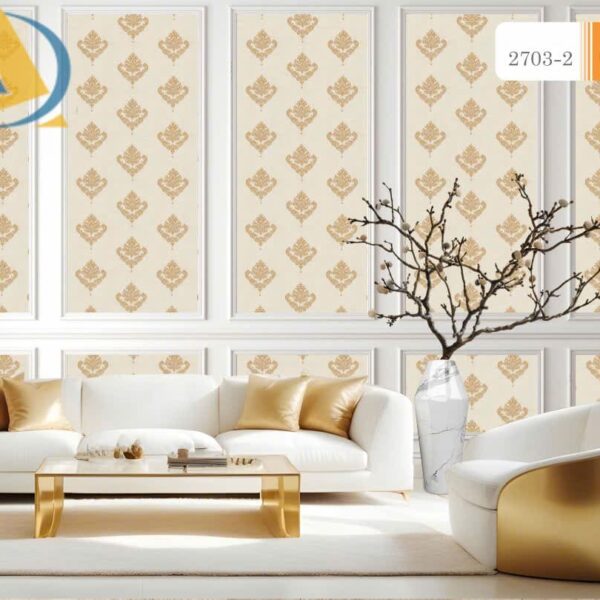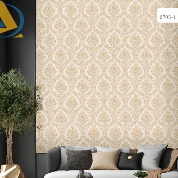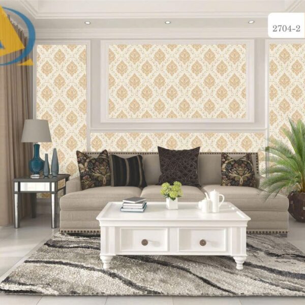 Giấy dán tường phòng khách hoa văn vàng nâu