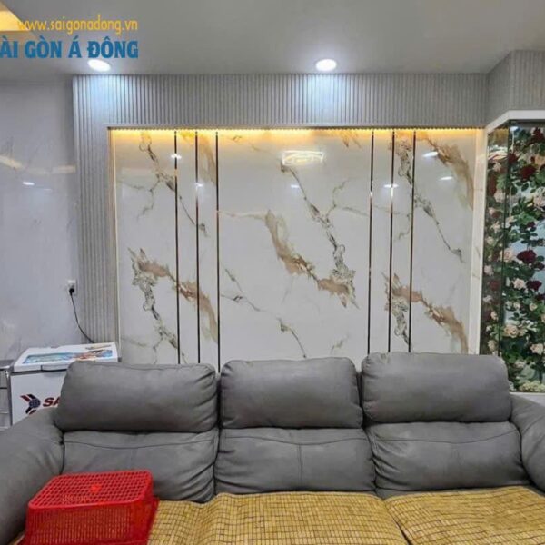 Tấm nhựa ốp tường giả đá trắng cho phòng khách