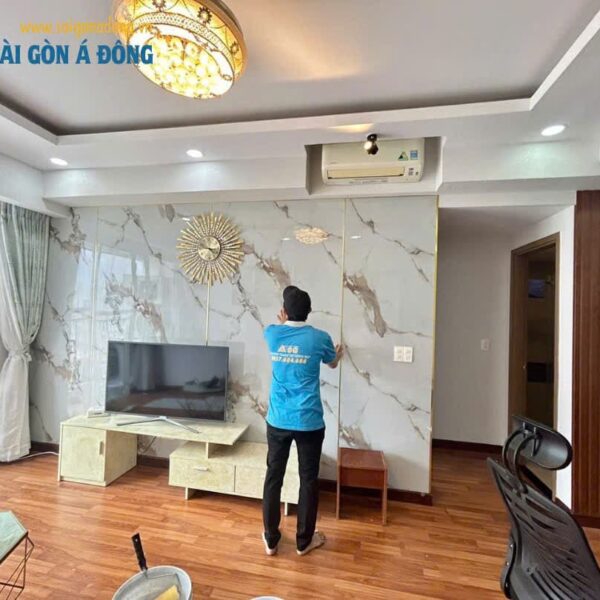 Thi công tấm nhựa pvc dán tường cho phòng khách