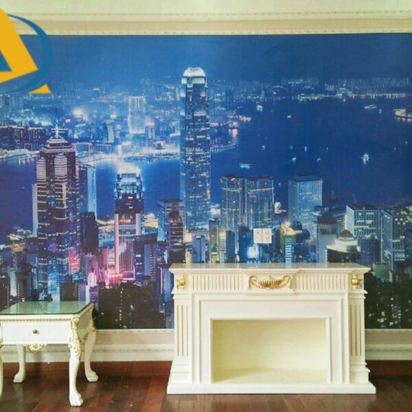 Tranh dán tường 3d cảnh đêm thành phố
