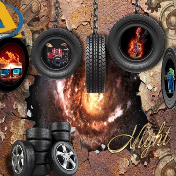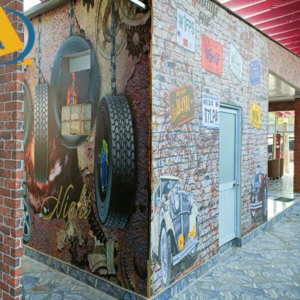 Tranh dán tường 3d giả gạch bánh xe