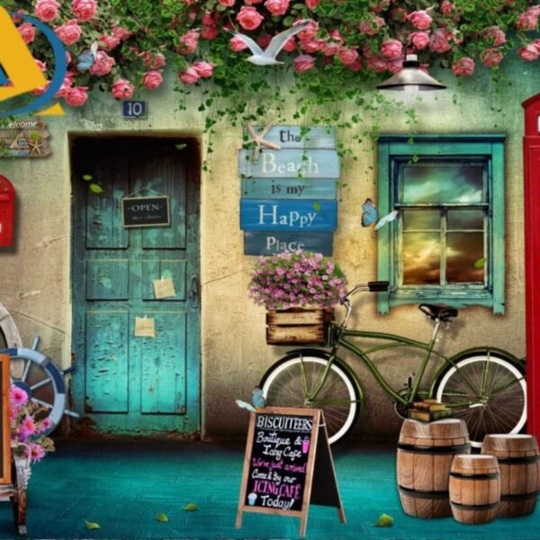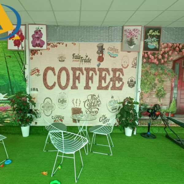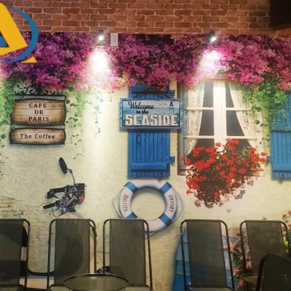 Mẫu tranh dán tường quán cafe sân vườn đẹp