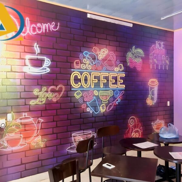 Mẫu tranh dán tường quán cafe hiệu ứng màu