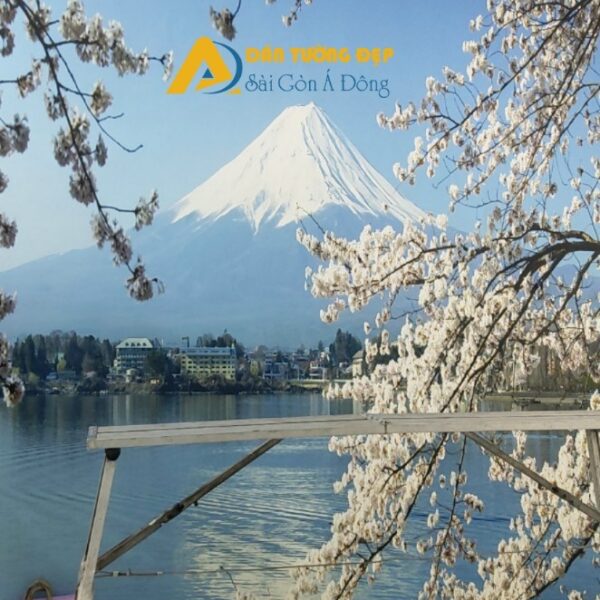 Tranh dán tường 3d phòng khách núi phú sĩ