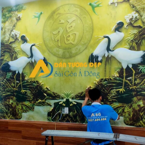 Tranh dán tường cây hoa đào cho phòng ngủ