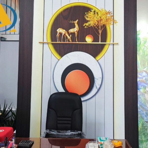 Tranh dán tường hoa sen phòng thờ nhà phố