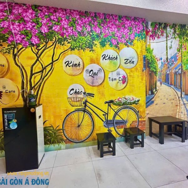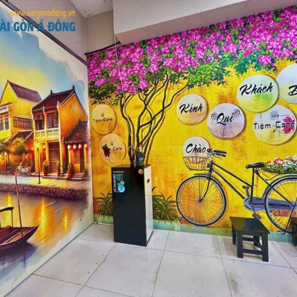 Tranh dán tường phong cảnh cho nhà ăn trường học