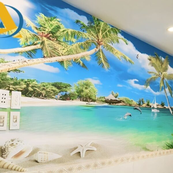 Tranh dán tường phòng khách cảnh biển
