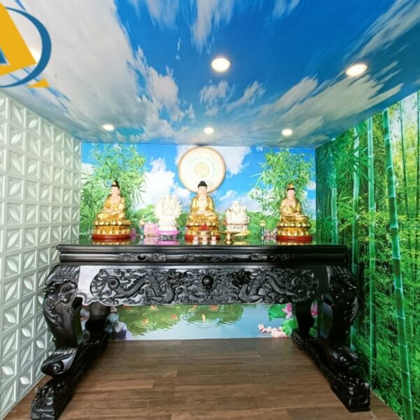 Tranh dán tường phòng thờ phật cho quán chay