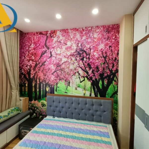 Tranh dán tường cây hoa đào cho phòng ngủ