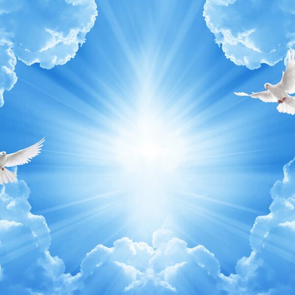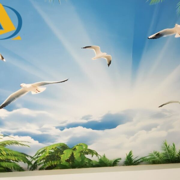 Tranh dán tường trần nhà 3D bồ câu cây dừa