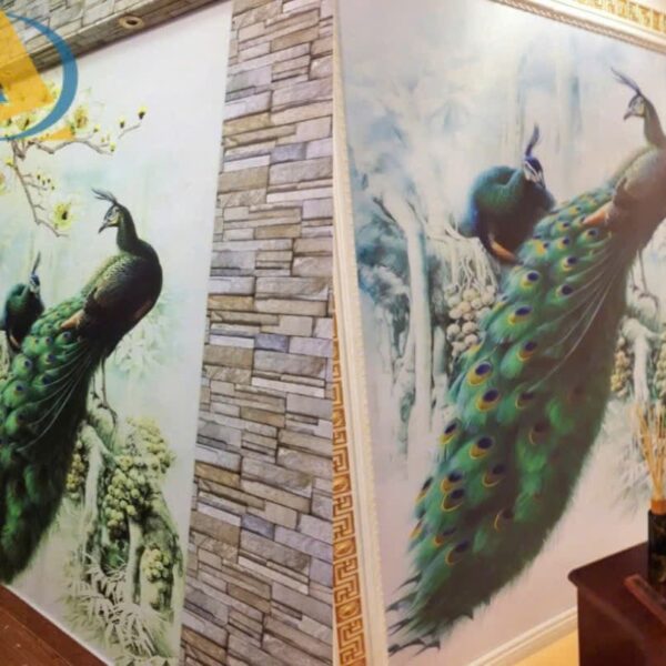 Tranh dán tường giúp tăng thẩm mỹ, tạo điểm nhấn tranh 3D cho phòng ngủ sang trọng mà vẫn giữ nét mộc mạc, gần gũi.