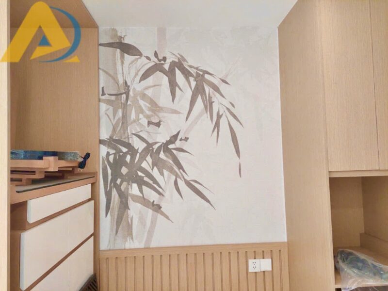 Tranh dán tường hoa sen do Sài Gòn Á Đông thực hiện được thiết kế tỉ mỉ, phù hợp phong cách nội thất phòng làm việc, giúp tạo không gian làm việc hiệu quả và cân bằng phong thủy.