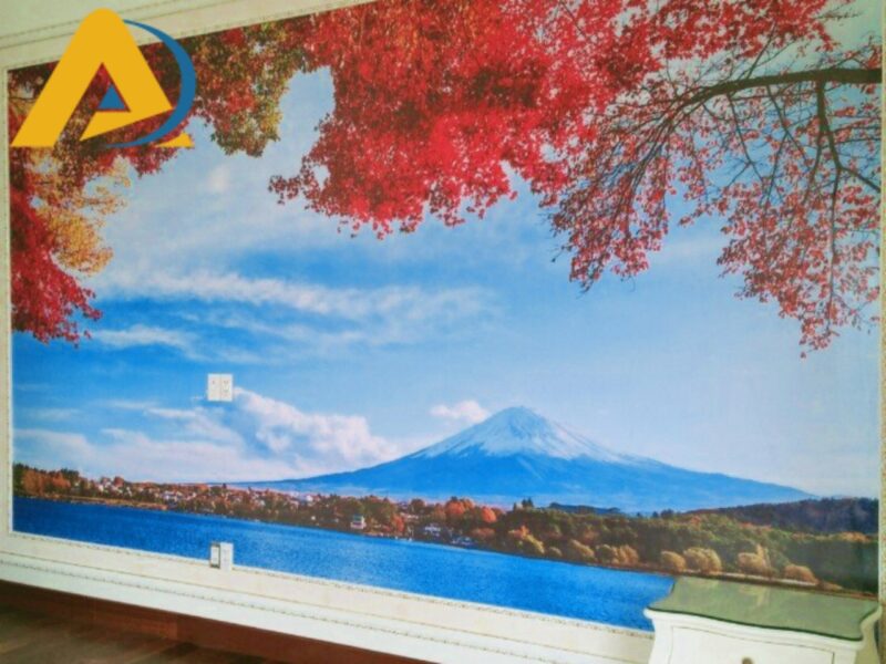 Mẫu tranh dán tường phòng ngủ núi phú sĩ