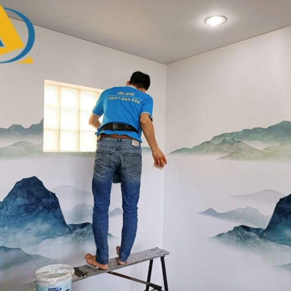 Việc lắp đặt thi công tranh dán tường đẹp cũng rất đơn giản và nhanh chóng, chỉ cần lăn keo dán trực tiếp lên tường mà không cần phải sử dụng các công cụ và vật liệu phức tạp.