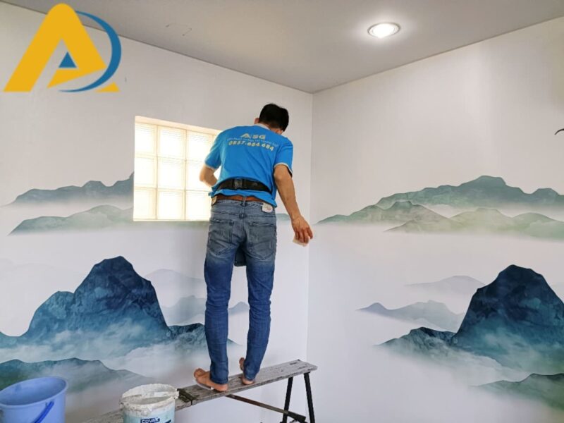 Việc lắp đặt thi công tranh dán tường đẹp cũng rất đơn giản và nhanh chóng, chỉ cần lăn keo dán trực tiếp lên tường mà không cần phải sử dụng các công cụ và vật liệu phức tạp.